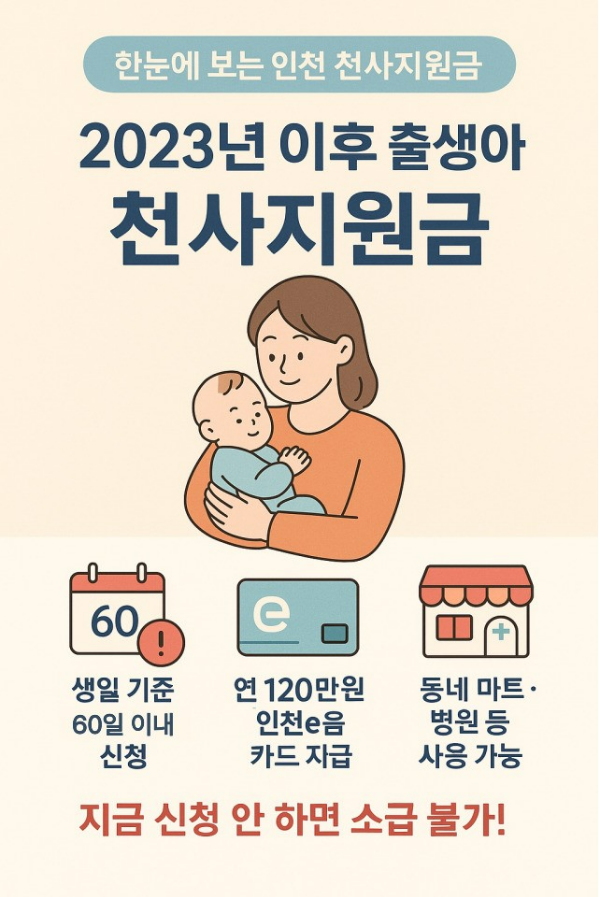 인천광역시가 시행 중인 대표적인 육아지원정책으로, 저출산 극복과 양육 부담 완화를 위해 2024년부터 본격 도입된 제도입니다.